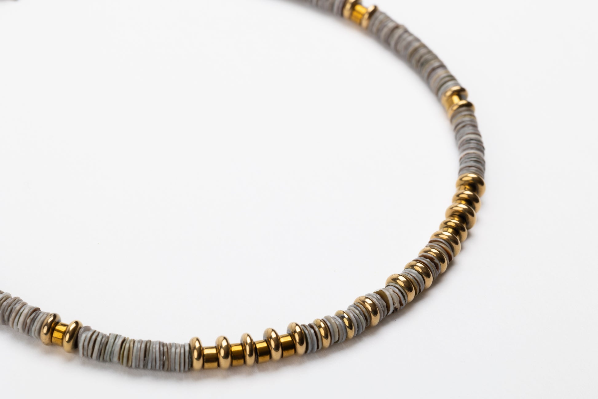 The ANIA Collection features delicate grey shell pukas that capture the calm beauty of the sea.