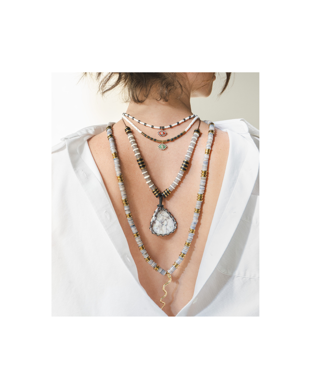 LUNGO takes its name from the Italian word for “long,” a nod to the length and versatility of these necklaces. The pieces can be worn wrapped for a layered look or left long for a relaxed style. It’s an easy way to add dimension to any outfit.