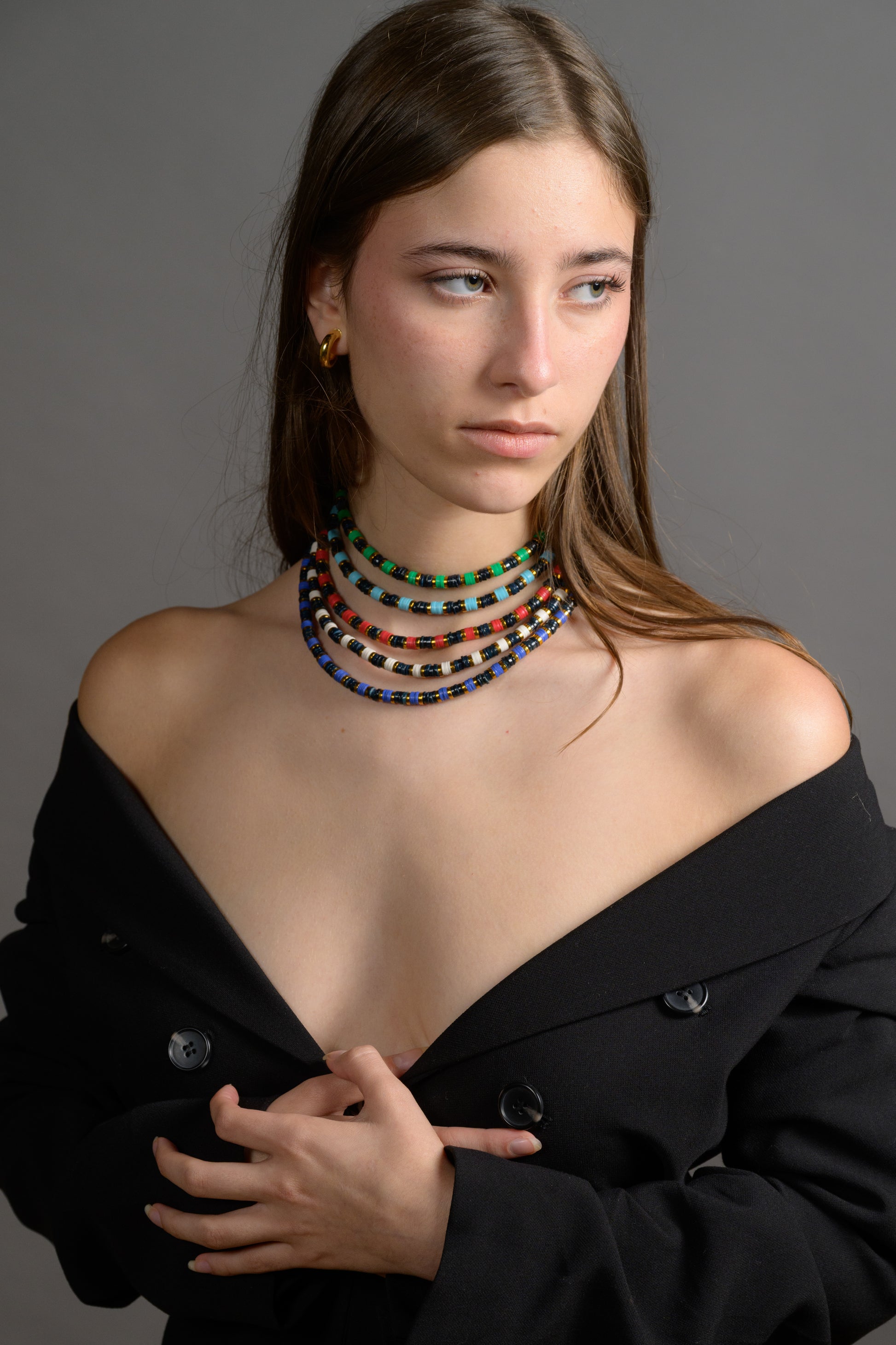OLAS takes inspiration from the Spanish word for waves, with alternating colors and metallic accents that echo their rise and fall. The collection has a structured and natural feel, bringing movement and texture.