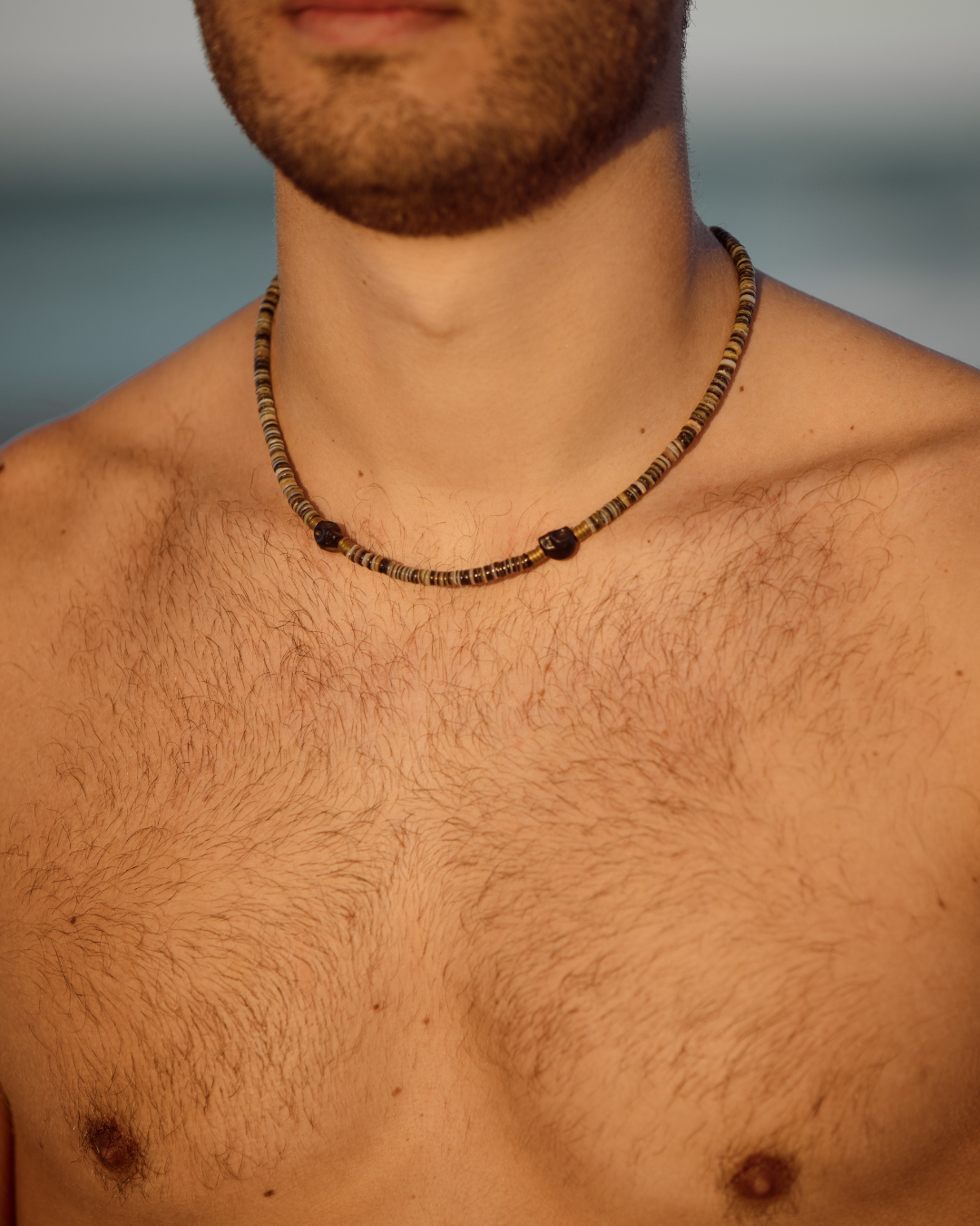 HIJOS DE PUKA is our collection designed for men. The name means “sons of Puka” in Spanish, a play on our brand name Hijas de Puka (“daughters of Puka”). Just like our women’s pieces, these necklaces are crafted with natural shells, African beads and distinctive details, but with a bolder, more rugged edge.
