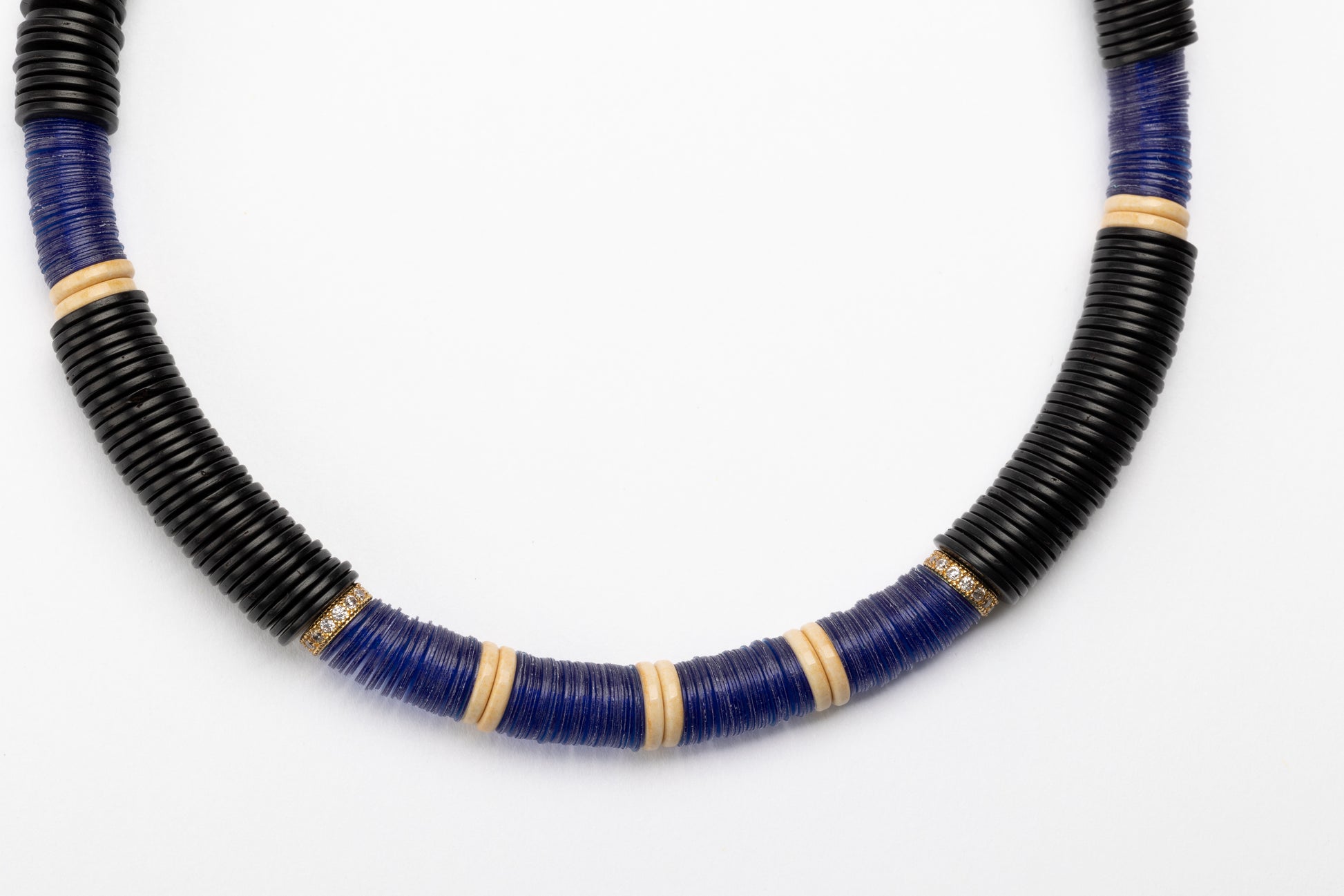 Embrace the bold and vibrant spirit of India with Hijas de Puka's JAIPUR collection. Inspired by India's rich colors and bold styles, this collection features necklaces adorned with colorful Vinyl African beads. Each piece is a harmonious blend of lively Indian hues and elegant design, perfect for adding a touch of glamour and cultural flair to any outfit.