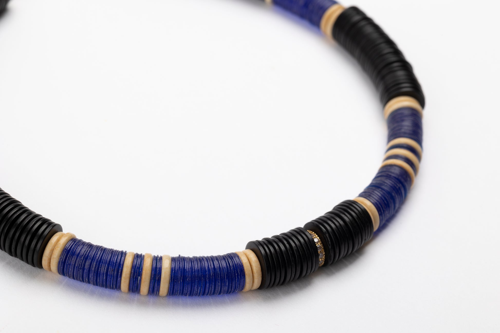 Embrace the bold and vibrant spirit of India with Hijas de Puka's JAIPUR collection. Inspired by India's rich colors and bold styles, this collection features necklaces adorned with colorful Vinyl African beads. Each piece is a harmonious blend of lively Indian hues and elegant design, perfect for adding a touch of glamour and cultural flair to any outfit.