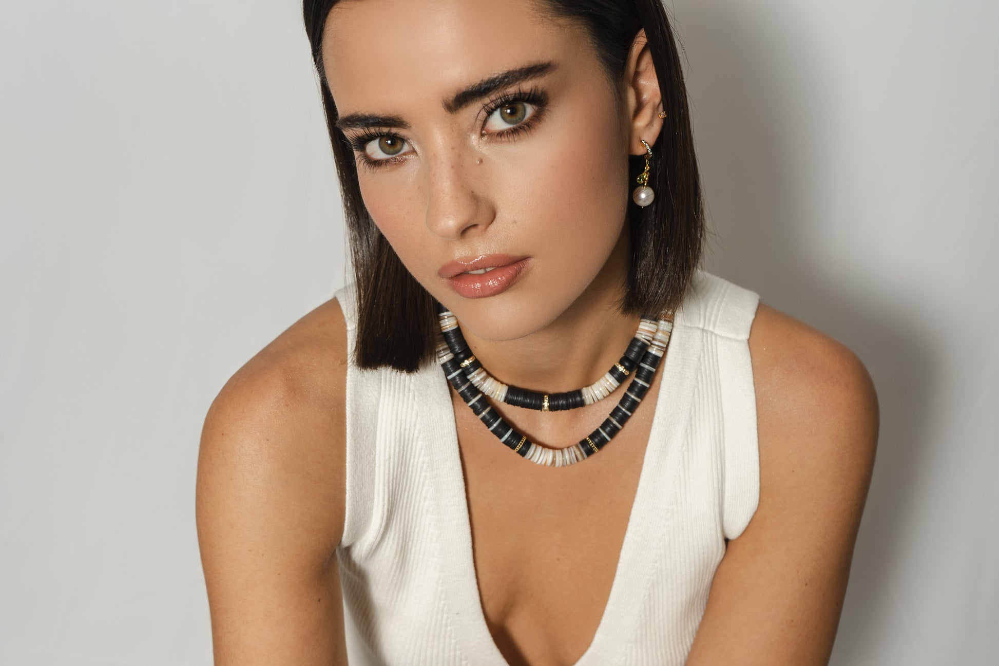 Embrace the bold and vibrant spirit of India with Hijas de Puka's JAIPUR SEA collection. Inspired by India's rich colors and bold styles, this collection features necklaces adorned with colorful Vinyl African beads, sparkling pave cubic zirconia spacers, and sleek hematite rondels. Each piece is a harmonious blend of lively Indian hues and elegant design, perfect for adding a touch of glamour and cultural flair to any outfit.