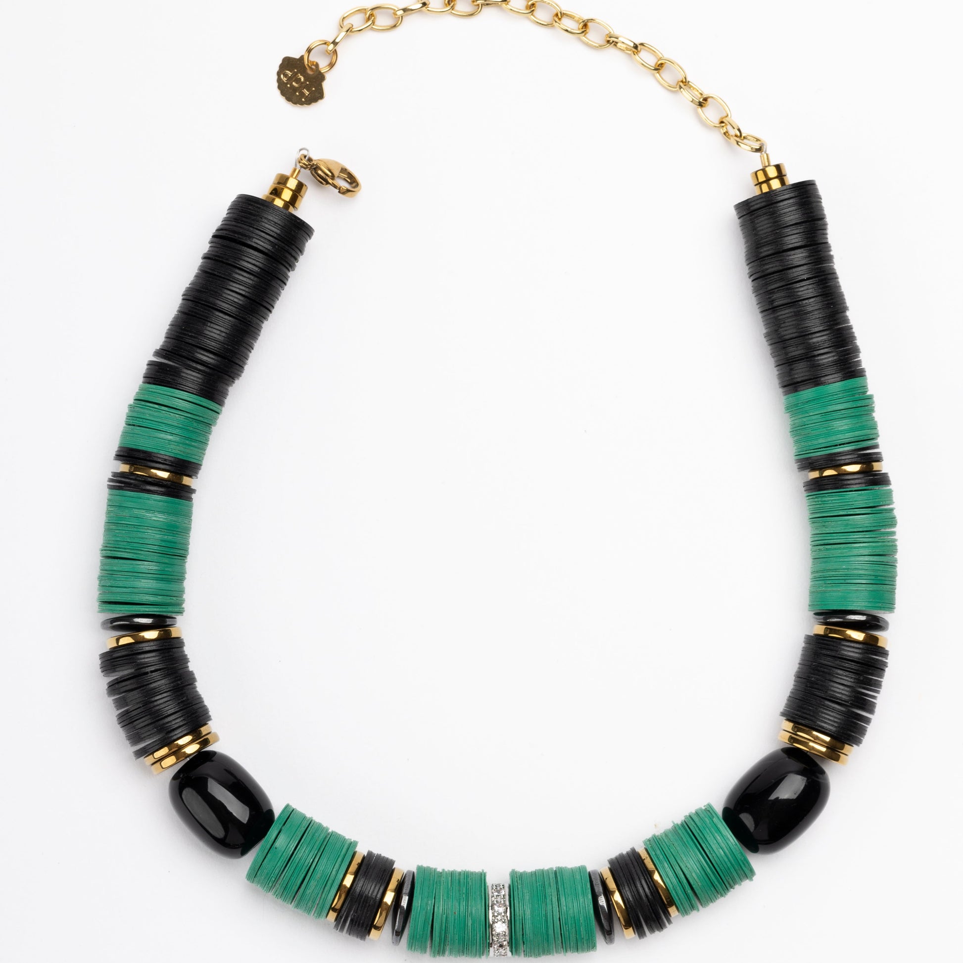 Embrace the bold and vibrant spirit of India with Hijas de Puka's JAIPUR collection. Inspired by India's rich colors and bold styles, this collection features necklaces adorned with colorful Vinyl African beads. Each piece is a harmonious blend of lively Indian hues and elegant design, perfect for adding a touch of glamour and cultural flair to any outfit.