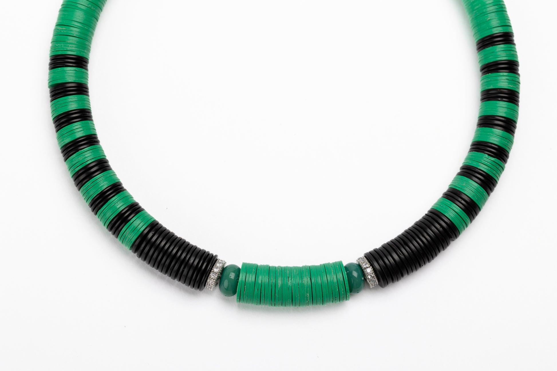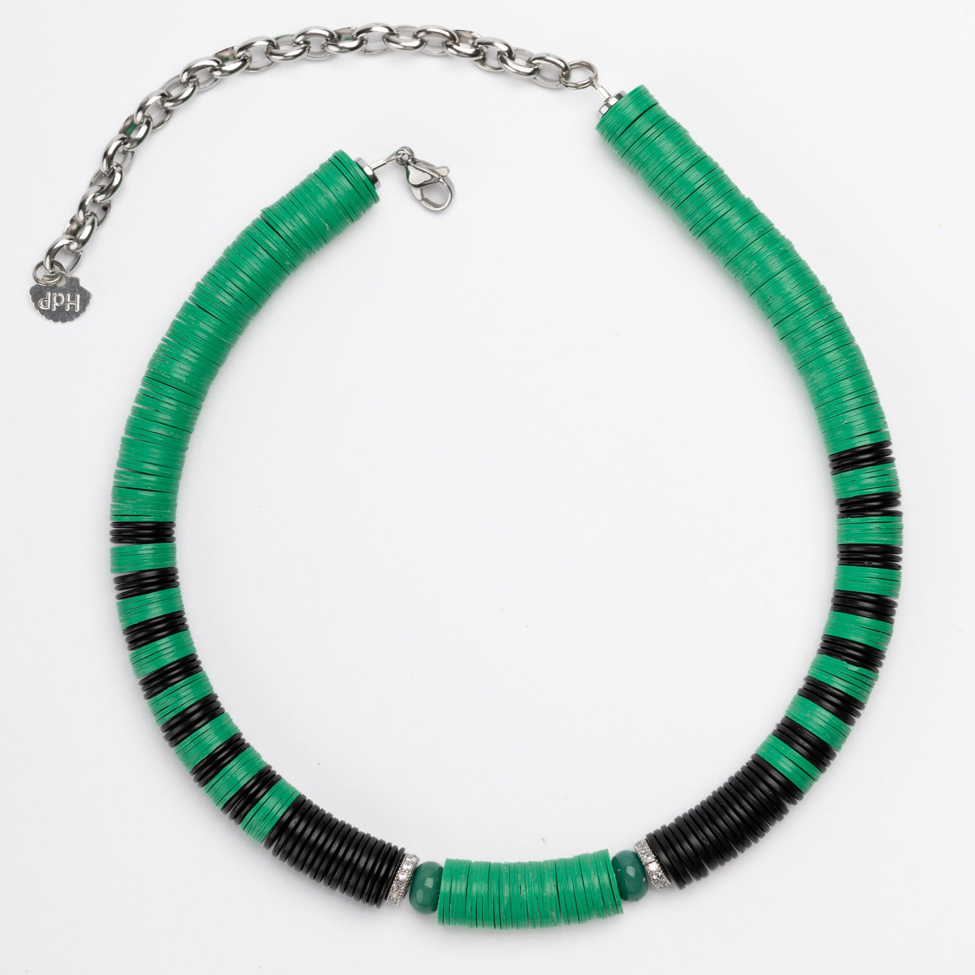 Embrace the bold and vibrant spirit of India with Hijas de Puka's JAIPUR collection. Inspired by India's rich colors and bold styles, this collection features necklaces adorned with colorful Vinyl African beads. Each piece is a harmonious blend of lively Indian hues and elegant design, perfect for adding a touch of glamour and cultural flair to any outfit.