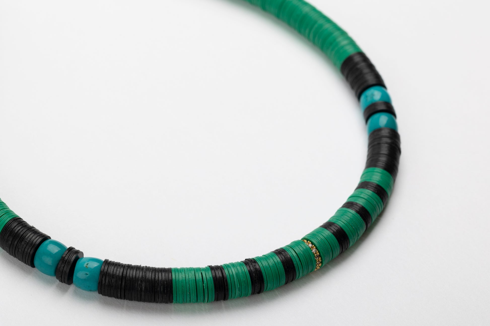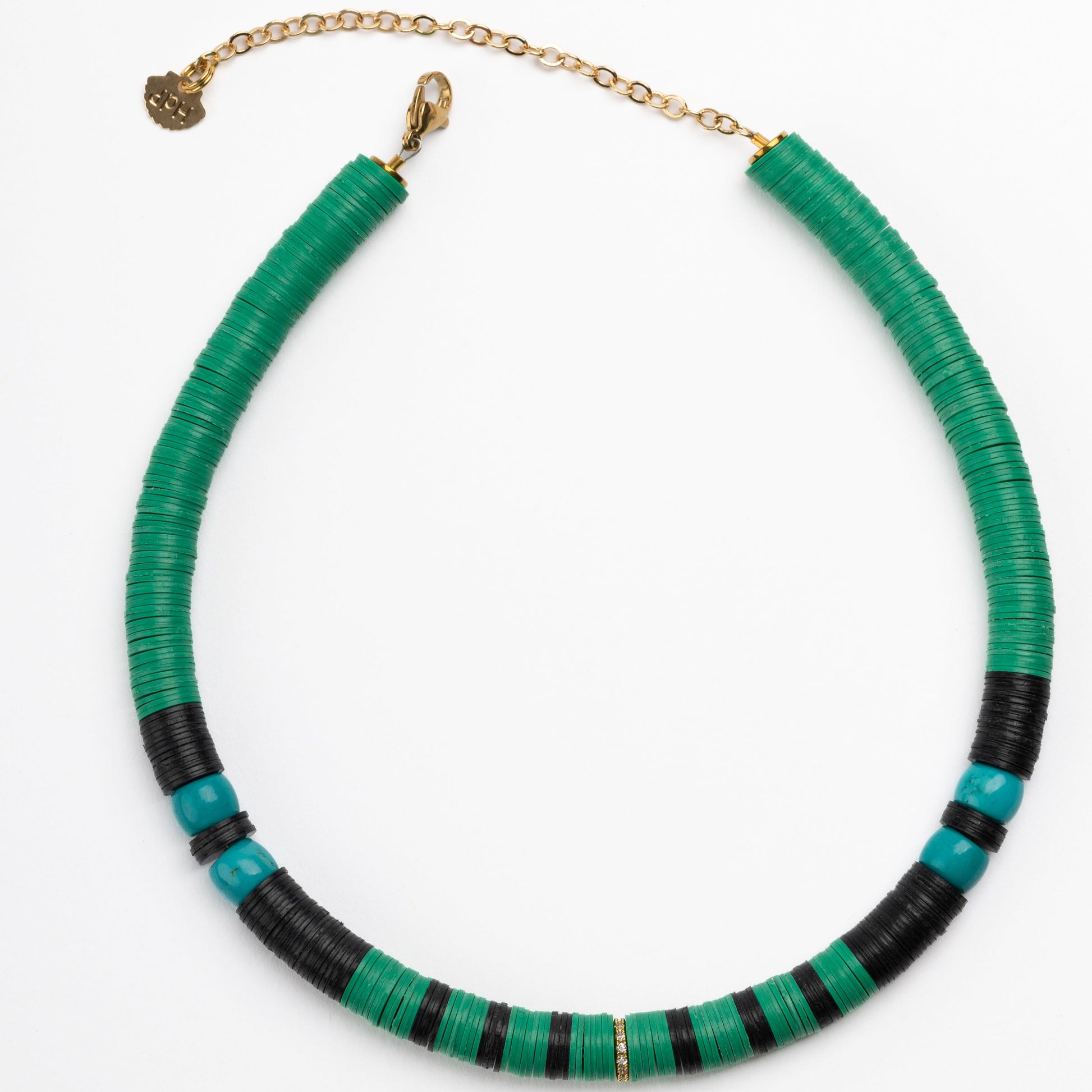 Embrace the bold and vibrant spirit of India with Hijas de Puka's JAIPUR collection. Inspired by India's rich colors and bold styles, this collection features necklaces adorned with colorful Vinyl African beads. Each piece is a harmonious blend of lively Indian hues and elegant design, perfect for adding a touch of glamour and cultural flair to any outfit.