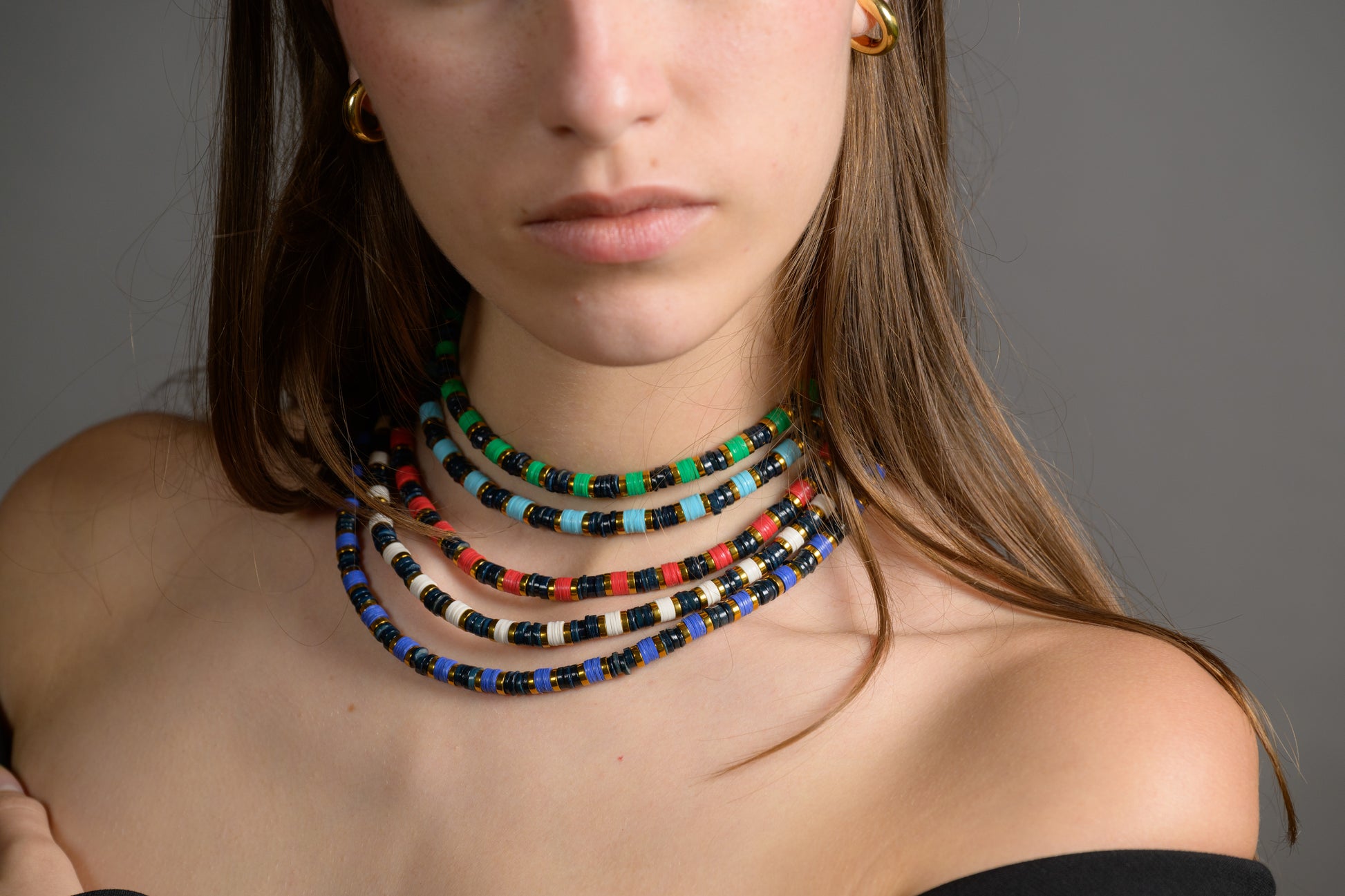 OLAS takes inspiration from the Spanish word for waves, with alternating colors and metallic accents that echo their rise and fall. The collection has a structured and natural feel, bringing movement and texture.