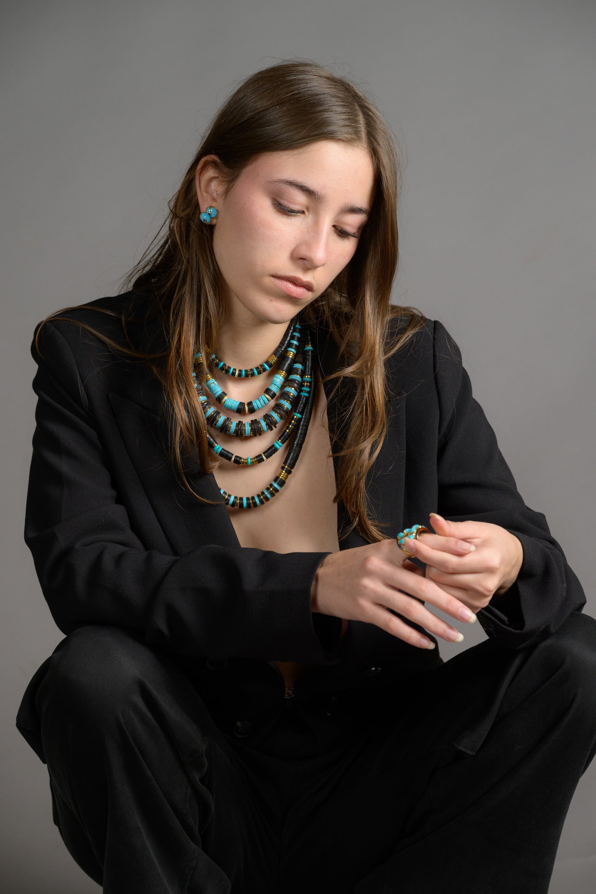 Embrace the bold and vibrant spirit of India with Hijas de Puka's JAIPUR collection. Inspired by India's rich colors and bold styles, this collection features necklaces adorned with colorful Vinyl African beads, sparkling pave cubic zirconia spacers, and sleek hematite rondels. Each piece is a harmonious blend of lively Indian hues and elegant design, perfect for adding a touch of glamour and cultural flair to any outfit.
